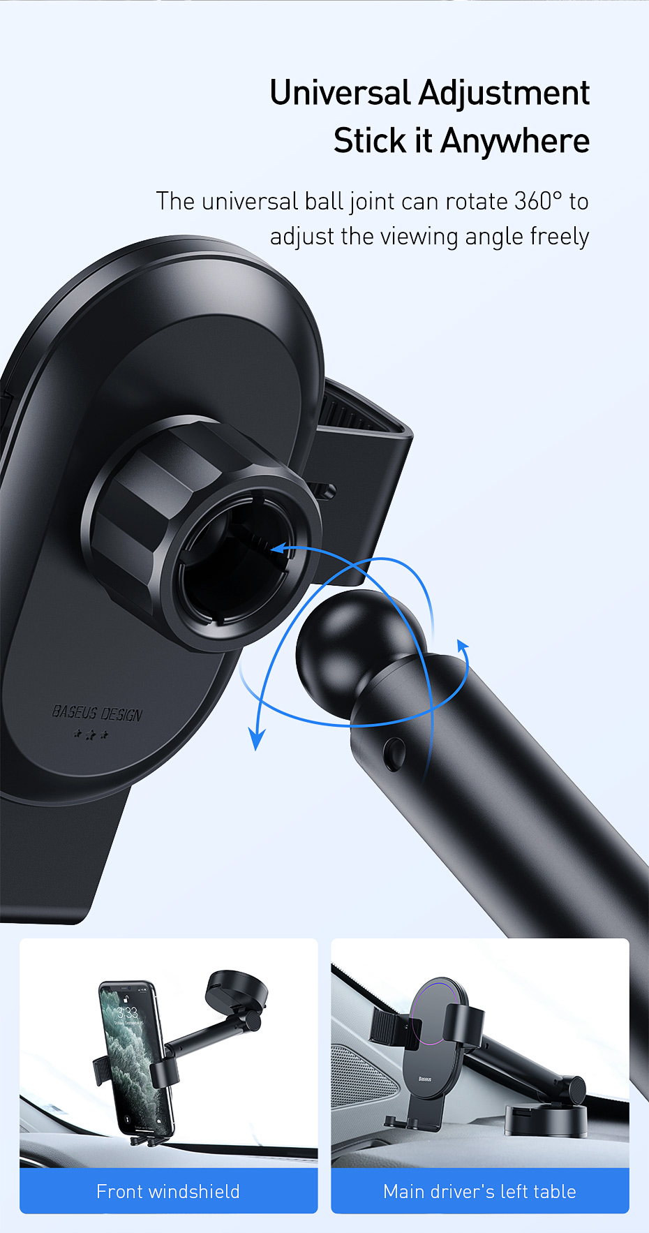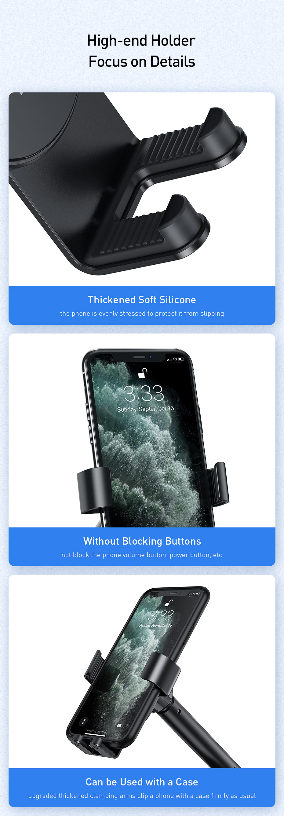 • Galvutė su 360° amplitude – laikiklis turi 360° reguliuojama galvutę. Dėl to galite reguliuoti telefono padėtį.