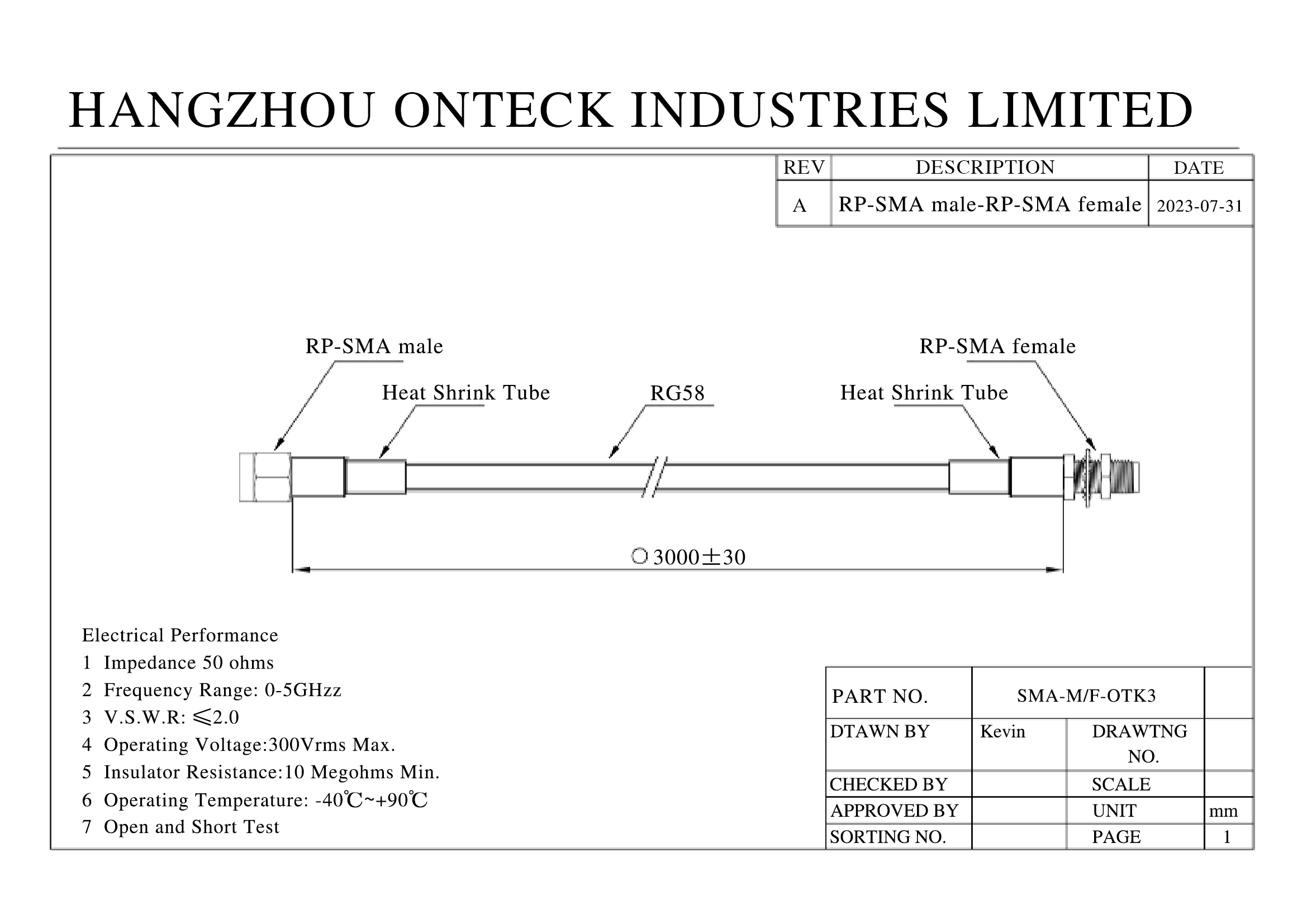 Cable; 3m; RP-SMA male,RP-SMA female; black; straight; 50Ω ONTECK