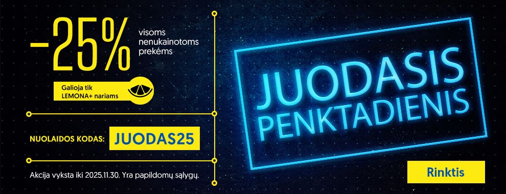Iki lapkričio 30 dienos visose LEMONA electronics fizinėse ar internetinėje parduotuvėje, pasinaudok nuolaidos kodu JUODAS25, kuris visoms nenukainotoms prekėms suteiks net -25% nuolaidą. Nuolaidos kodas galioja tik LEMONA+ lojalumo programos dalyviams.